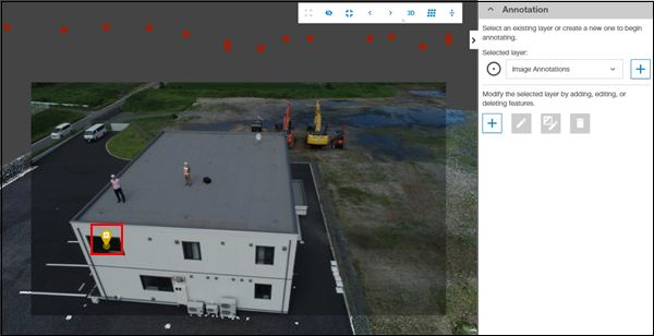 In image mode, it is also possible to add annotations, which is especially useful when the project includes results from an aerial survey. These annotations are directly linked to the image where they were added, making it easy to inspect and quickly add relevant observations.